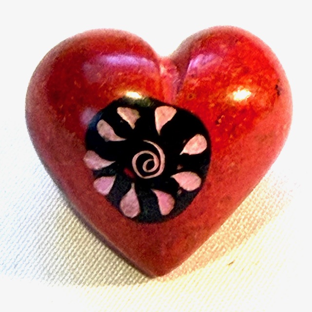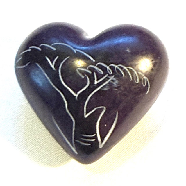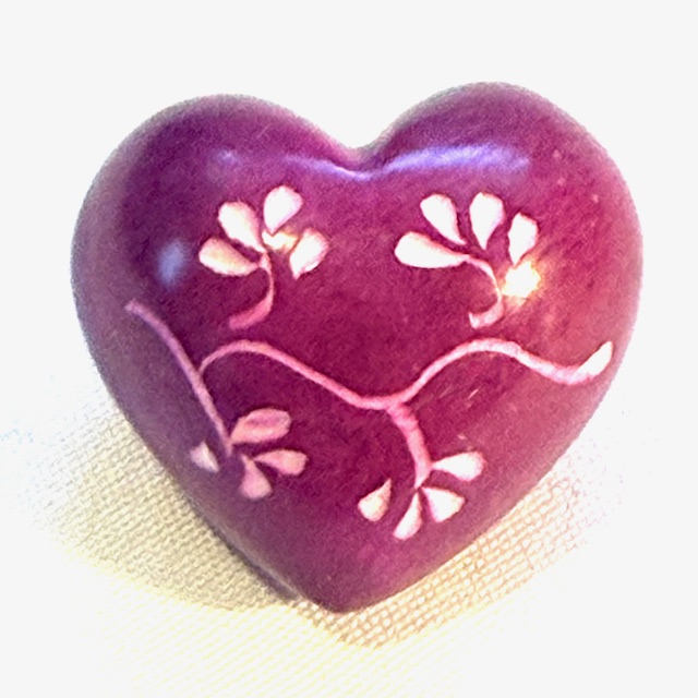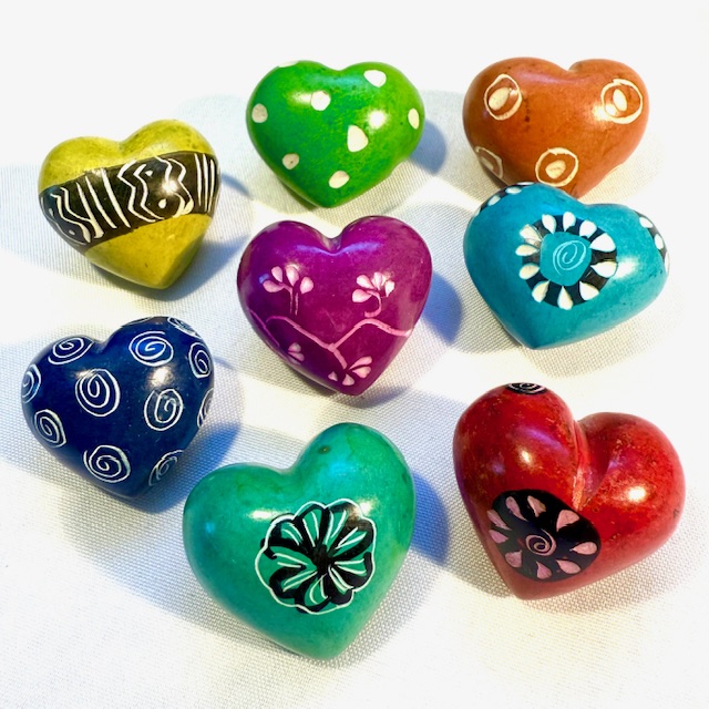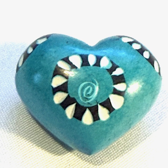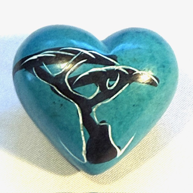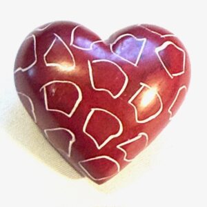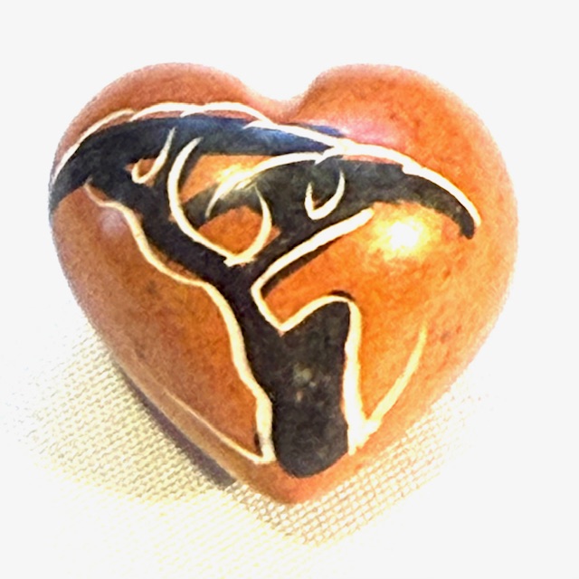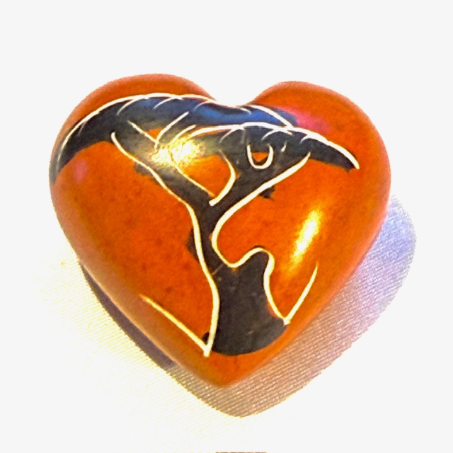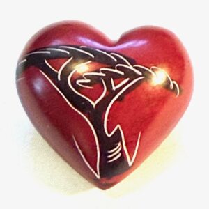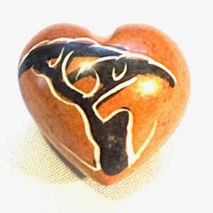 This small, hand-carved soapstone heart is made by Kenyan women artisans using food-safe dyes and pocket-knife etching. A unique, ethical gift symbolizing love and global connection. Each purchase supports fair-trade craftsmanship.